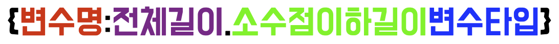 중괄호 안에 원하는 규칙을 추가하면 됩니다. 전체길이와 소수점이하길이 사이에는 점(.)이 있습니다.